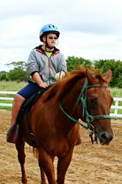 Riding sessions are tailored to the needs and skill level of each rider. Riders with autism, cerebral palsy, downs syndrome, ADHD, LD, intellectual impairment, and other special needs ride and progress at their own individual rates. Research shows that students who participate in equine assisted activities can experience physical, emotional, and mental rewards. Many medical professionals, including the American Physical Therapy Association and American Occupational Therapy Association recognize the therapeutic qualities of equine assisted activities. Volunteers and instructors delight in watching the children develop horsemanship skills while having fun in this safe and supportive environment. The horse's soothing rhythm, strength, warmth and three-dimensional movement pattern provides healthy exercise while improving strength, circulation, muscle tone and sensory integration. The discipline associated with working with horses and the social interactions between peers benefit the mind and spirit while raising self-esteem and increasing self-sufficiency through accomplishment. The unconditional love of the horse reduces anxiety, encourages interaction and offers a haven where riders can feel a sense of empowerment.